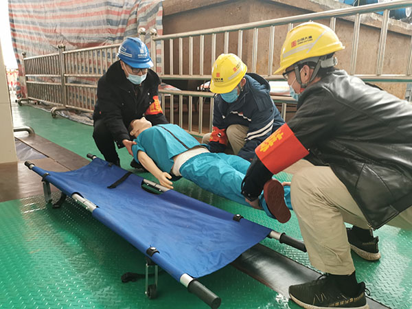 此次演練在主安裝廠2號機組大修現(xiàn)場進(jìn)行,模擬兩名施工人員在轉(zhuǎn)輪支架3米多高的平臺上焊接縫隙,一名工作人員未系安全帶進(jìn)行作業(yè),不慎摔倒墜落。該公司相關(guān)部門接到報告后,迅速啟動應(yīng)急機制,立即撥打120緊急電話,并通知應(yīng)急救援隊趕赴事故現(xiàn)場。救援現(xiàn)場,應(yīng)急隊員迅速判斷危險情況,并檢查傷員傷勢,大家齊心協(xié)力將傷員轉(zhuǎn)移到安全地帶,拉起警戒線,對傷員進(jìn)行緊急檢查。救援人員發(fā)現(xiàn)傷者腿部骨折,無法行動,立即進(jìn)行骨折包扎急救,按部就班、細(xì)致謹(jǐn)慎對傷口進(jìn)行消毒、止血、固定、包扎。最后,傷員被順利送往醫(yī)院。