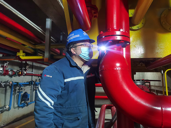 陳東汛在生產(chǎn)現(xiàn)場檢查設備設施
