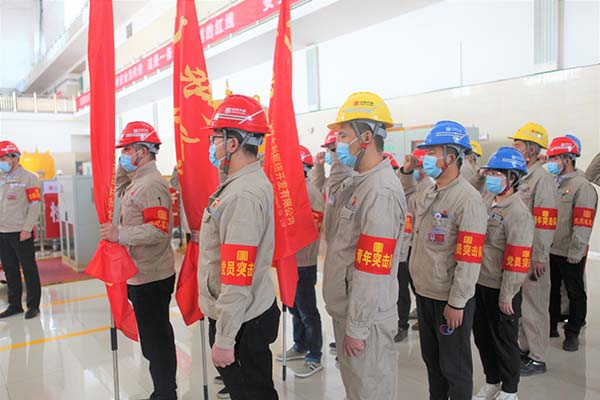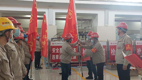 活動(dòng)中,該公司黨委委員、紀(jì)委書(shū)記、工會(huì)主席李強(qiáng)同志宣讀了公司黨委印發(fā)《關(guān)于在1號(hào)機(jī)組A級(jí)檢修工作中充分發(fā)揮黨團(tuán)組織作用的通知》的文件要求。公司黨委書(shū)記、執(zhí)行董事、總經(jīng)理薛福林同志為“1號(hào)機(jī)組A級(jí)檢修”黨員突擊隊(duì)、黨員服務(wù)隊(duì)、青年突擊隊(duì)分別授旗。生產(chǎn)一線黨員代表、青年代表分別圍繞1號(hào)機(jī)組A級(jí)檢修工作實(shí)際作了《黨員承諾》《青年承諾》。公司黨委委員、副總經(jīng)理錢明雄同志帶領(lǐng)廣大黨員在檢修現(xiàn)場(chǎng)面向鮮紅的黨旗重溫了入黨誓詞。
