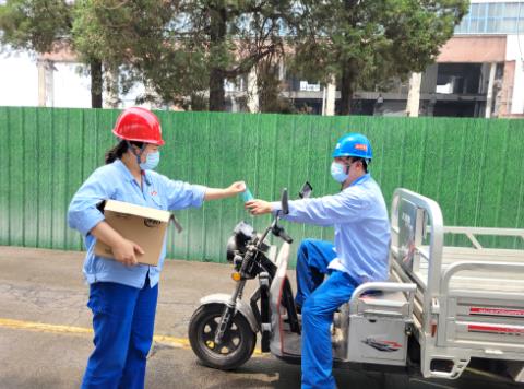 圖為,6月21日,立夏,該廠工會(huì)人員在廠區(qū)變電路設(shè)立“送清涼流動(dòng)驛站”,工會(huì)人員拉著小車,抱著紙箱,一路迎接剛剛收工、走出生產(chǎn)現(xiàn)場(chǎng)的職工,為他們送上夏日關(guān)懷。僅一天時(shí)間送上礦泉水200瓶,冰棍260根,職工們接過冷飲,連聲道謝,臉上洋溢著幸福的笑容。