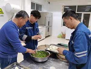 節(jié)日期間,現(xiàn)場職工們一起包餃子、貼春聯(lián),共同烹飪?cè)趰徛毠さ?ldquo;團(tuán)圓年夜飯”,為現(xiàn)場帶來十足“年味兒”。