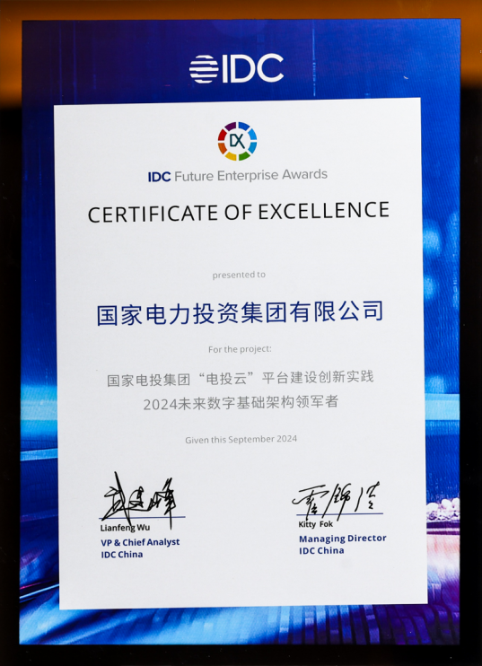 國(guó)家電投集團(tuán)“電投云”平臺(tái)榮獲IDC未來企業(yè)大獎(jiǎng)