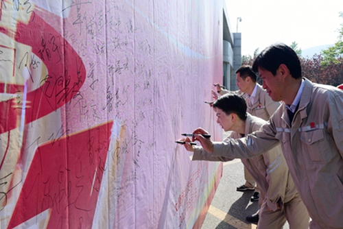 中國電力網(wǎng)訊 致敬勞動者,奮進(jìn)新時(shí)代!為熱烈慶祝中國共產(chǎn)黨成立100周年,喜迎2021年五一國際勞動節(jié)到來,5月1日,大唐淮北發(fā)電廠啟動勞模宣傳月暨“勞動我最美”職工簽名慰問活動,大力弘揚(yáng)勞動精神、勞模精神和工匠精神,充分營造“勞動最光榮、勞動最崇高、勞動最偉大、勞動最美麗”的企業(yè)氛圍。廠領(lǐng)導(dǎo)參加活動,親切慰問五一當(dāng)天值守職工。