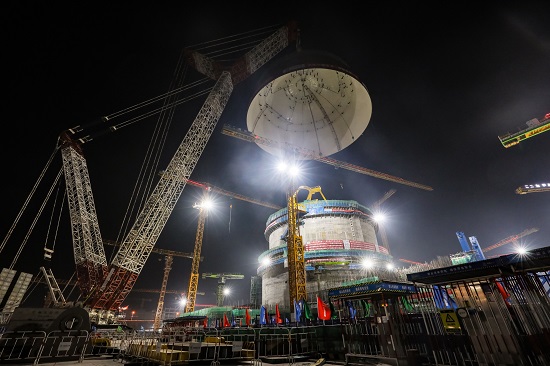 2月21日,華能海南昌江核電二期工程3號機組內(nèi)穹頂?shù)跹b就位,標志著該機組從土建施工階段全面轉入安裝階段。