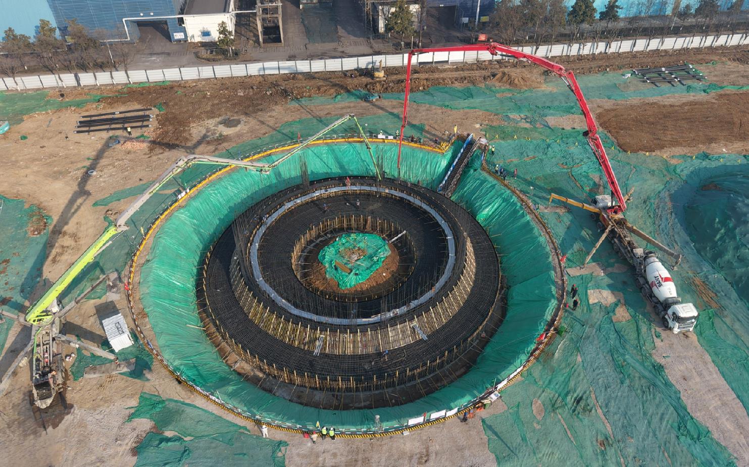 此次7號(hào)鍋爐和煙囪基礎(chǔ)采取不間斷接續(xù)施工方式,自1月17日7時(shí)40分開始,歷經(jīng)4天4夜奮戰(zhàn),先后完成了兩區(qū)域大體積混凝土澆筑任務(wù)。7號(hào)鍋爐筏板長(zhǎng)45.9米、寬44.7米,基礎(chǔ)混凝土厚度2.3米,采用2臺(tái)63米汽車泵和1臺(tái)56米汽車泵,澆筑混凝土總量4673方。煙囪基礎(chǔ)為環(huán)板式,外直徑為38米,澆筑采取用二備一泵車配置,總澆筑方量達(dá)2451方。尤為值得一提的是,煙囪基礎(chǔ)自2024年12月26日開挖,于2025年1月20日澆筑完成,僅歷時(shí)25天,打破了該公司煙囪基礎(chǔ)施工的最短工期紀(jì)錄。
