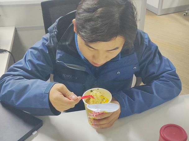 “最大的困難還是吃飯,大年三十晚上我們還能點到外賣,從初一開始就沒有店鋪營業(yè)了,泡面就是我們的工作餐?!蓖踝雍栏袊@道。
