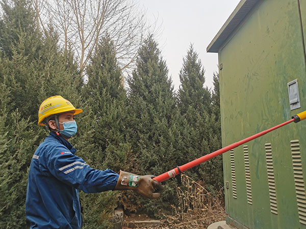團(tuán)員青年對外引電源開關(guān)進(jìn)行驗(yàn)電