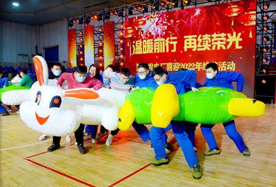 在趣味活動環(huán)節(jié)中,踩氣球、搶水瓶、安全行車、龜兔爭霸等比賽精彩紛呈,現(xiàn)場職工全員參與互動,你爭我奪,你追我趕,大家在一片歡樂、祥和的氛圍中再踏新征程。