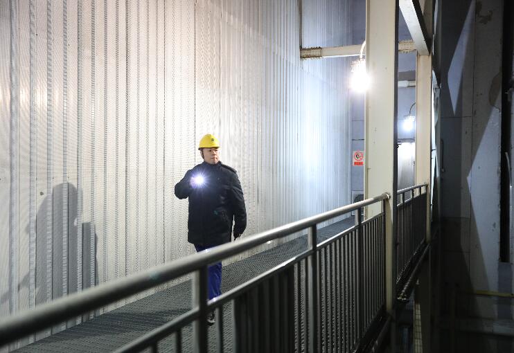 華能北京熱電廠運(yùn)行部值守人員在除夕夜開展巡檢。