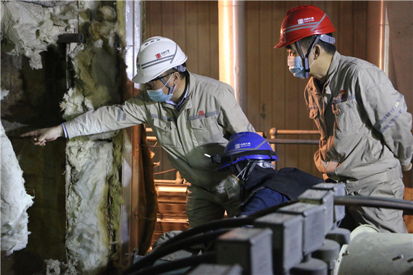 此次消缺期間室外最低氣溫達(dá)到零下20度左右,防寒防凍無(wú)疑是消缺工作的重中之重,長(zhǎng)山廠及時(shí)切換供熱方式,利用化廠備用熱源為家屬區(qū)供熱,同時(shí)也為防寒防凍工作、機(jī)組順利啟動(dòng)提供可靠保證。在此期間,各單位各負(fù)其責(zé),全員行動(dòng),全面開(kāi)展防寒防凍工作。發(fā)電部作為主體責(zé)任部門,從主任到單元長(zhǎng),從值班員到巡檢員,明確區(qū)域,認(rèn)真排查,每小時(shí)測(cè)量廠房所有區(qū)域溫度,同時(shí)對(duì)門窗封閉、室外管路保溫等防寒防凍措施進(jìn)行再次確認(rèn);設(shè)備部一方面制定方案組織相關(guān)單位消缺,一方面全面安排部署極寒天氣下的防寒防凍工作;各車間(分場(chǎng))在生產(chǎn)廠房各層重要部位設(shè)置炭火爐,對(duì)熱控表管表計(jì)、電氣電子間盤柜、氨區(qū)管路進(jìn)行檢查,增加伴熱帶,設(shè)置值班人員監(jiān)測(cè)環(huán)境溫度,全力以赴確保防寒防凍工作萬(wàn)無(wú)一失。消缺期間,行政事務(wù)部積極做好后勤保障工作,按時(shí)準(zhǔn)備盒飯送到現(xiàn)場(chǎng),助力消缺工作順利完成。