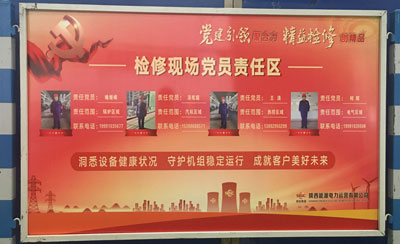 “發(fā)揮黨員模范帶頭作用,以身作則按期完成檢修任務(wù)!”一塊塊鮮紅的“黨員責(zé)任區(qū)”和“黨員承諾”展板,真正使黨員身份亮出來、作用顯出來、形象立起來。