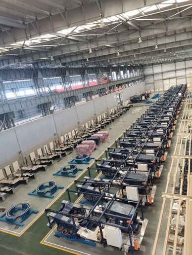 在大規(guī)模生產(chǎn)工作中,有效拓寬生產(chǎn)空間、采用精細(xì)化車間定置管理將極大提升生產(chǎn)效率。生產(chǎn)團(tuán)隊(duì)根據(jù)物資到貨情況及生產(chǎn)進(jìn)程,合理規(guī)劃空間布局,提高空間利用率的同時兼顧后續(xù)工序便利性。充分利用外場地及庫房空間,巧思布置,使得大批量存放半成品機(jī)組得以實(shí)現(xiàn)。整齊劃一的機(jī)組,形成了華銳風(fēng)電一道最美的風(fēng)景線。