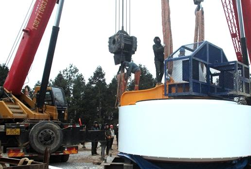 就這樣看似簡單的主機吊裝,近5個小時才好不容易完成。下一步,還將進行風機葉片的吊裝。王進逆介紹,一臺風機無論是塔筒、主機吊裝,還是葉片吊裝,都必須與天時地利人和密切相關,而且缺一不可,否則根本無法安全、順利地完成。
