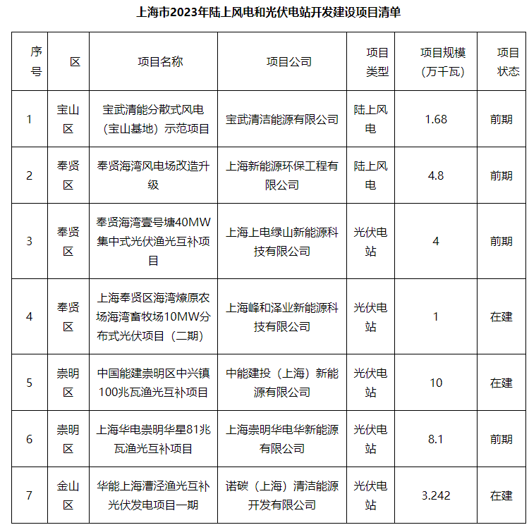 上海市發(fā)改委印發(fā)《上海市2023年陸上風(fēng)電、光伏電站開發(fā)建設(shè)方案》