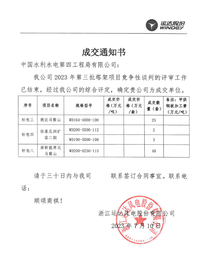 近日,市場(chǎng)開發(fā)傳來(lái)捷報(bào),中國(guó)水電四局成功中標(biāo)浙江運(yùn)達(dá)德達(dá)馬鬃山、恒基瓜州擴(kuò)容二期、浙新能肅北馬鬃山3個(gè)風(fēng)電項(xiàng)目,上述項(xiàng)目由中國(guó)水電四局(酒泉)新能源裝備有限公司承建。