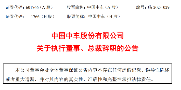 公告披露,2023年9月12日,中國中車董事會收到執(zhí)行董事、總裁樓齊良先生的辭職報告。樓齊良先生因工作調(diào)整原因辭去公司執(zhí)行董事、總裁、董事會戰(zhàn)略委員會委員、提名委員會委員職務。同時, 辭去《香港聯(lián)合交易所有限公司證券上市規(guī)則》第3.05條項下的公司授權(quán)代表職務。辭職后,樓齊良先生不在公司及控股子公司擔任任何職務。