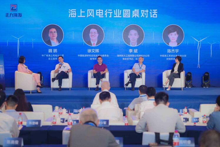 主旨演講后,由正力海發(fā)公司總裁高玲總主持,中廣核工程公司海上風電公司總工程師魏鵬、國能源研究會氫能專業(yè)委員會秘書長徐文輝、中保利長大工程有限公司港航分公司黨總支書記、總工程師李斌、中國海工系統(tǒng)設備與事業(yè)部控制系統(tǒng)專家陳杰宇4位嘉賓的圓桌對話,圍繞中國海風拓展國際市場的機遇和挑戰(zhàn)、海上風電制氫技術發(fā)展及未來展望、深水風電支腿船如何助力浮式風機建設、海工裝備國產(chǎn)化的思考四個方面進行深入探討,四位嘉賓專業(yè)見解和經(jīng)驗,展現(xiàn)了海風市場、海上風電、海工建設、海工裝備在未來的發(fā)展中具有廣闊的前景和未來,海洋能源、海洋工程大有可為。