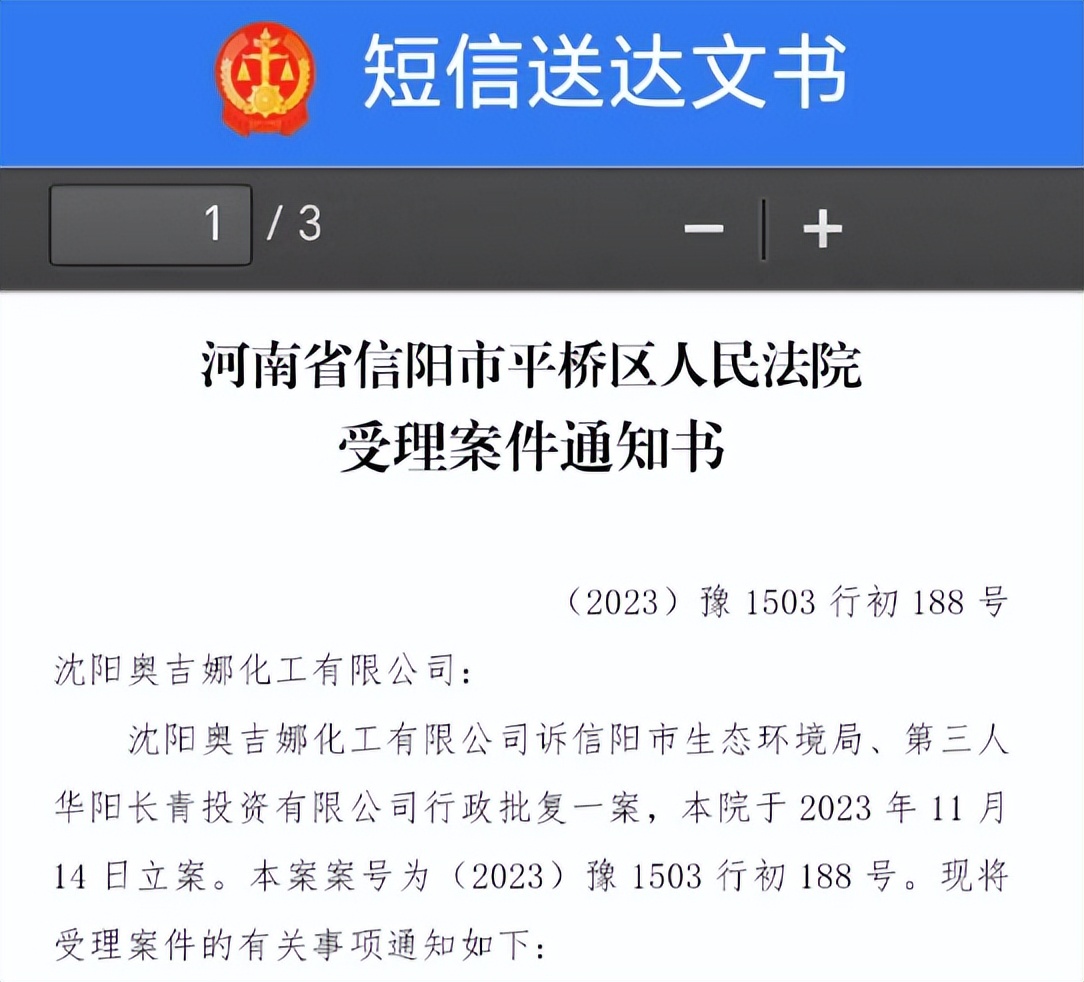 2023年10月18日,奧吉娜公司依據(jù)《行政訴訟法》和《行政訴訟法解釋》,將信陽市環(huán)境局和第三人華陽長青公司訴至信陽市平橋區(qū)人民法院,請求法院:1、判決撤銷被告作出的《信陽市生態(tài)環(huán)境局關于沈陽奧吉娜化工有限公司舉報華陽長青投資有限公司違法經(jīng)營及固始分局不作為、亂作為等問題調查處理的函》;2、責令被告針對原告于2023年8月3日向被告申訴舉報華陽長青投資有限公司事項,限期進行重新調查和答復;3、請求人民法院判令被告2023年9月13日調查處理函認定的廢合成油不應按危險廢物有關規(guī)定進行管理,違反法律規(guī)章的規(guī)定,無效。(奧吉娜合成油)