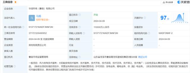 近日,華潤風電(曹縣)有限公司成立,法定代表人為馬旭,注冊資本11億人民幣,經營范圍含風力發(fā)電技術服務、太陽能發(fā)電技術服務、以自有資金從事投資活動、新能源原動設備制造等。股東信息顯示,該公司由華潤新能源(曹縣)有限公司、中鐵二十四局集團有限公司、中車山東風電有限公司、電氣風電(688660)共同持股。