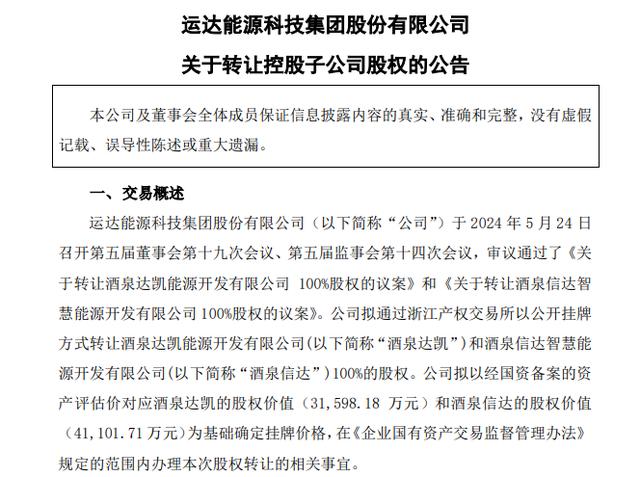 據(jù)悉,運(yùn)達(dá)股份在2024年還完成了兩家全資控股子公司100%股權(quán)的轉(zhuǎn)讓事項(xiàng),總評(píng)估價(jià)值為72,699.89萬元,進(jìn)一步體現(xiàn)了公司在新能源領(lǐng)域的戰(zhàn)略調(diào)整和資產(chǎn)優(yōu)化。