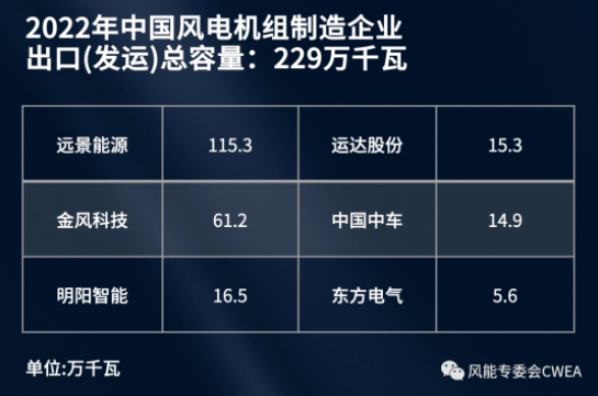 2022年,中國新增風電機組出口(發(fā)運)容量為229萬千瓦,累計出口(發(fā)運)容量達1193萬千瓦,出口設備已遍布全球5大洲共49個國家。