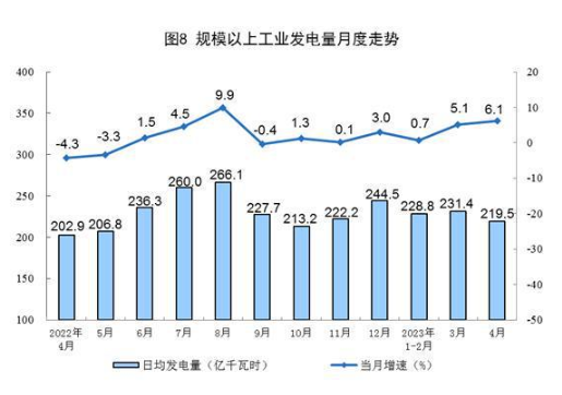 國家統(tǒng)計局數據顯示,4月份,發(fā)電6584億千瓦時,同比增長6.1%,增速比3月份加快1.0個百分點,日均發(fā)電219.5億千瓦時。1—4月份,發(fā)電27309億千瓦時,同比增長3.4%。