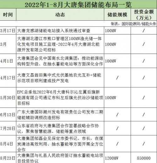 據(jù)不完全統(tǒng)計,2022年1-8月,大唐集團儲能項目招標3個,與山東、保定、南水北調(diào)集團等簽訂合作協(xié)議,涉及抽水蓄能、智慧能源等領(lǐng)域。