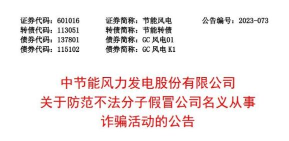 節(jié)能風電表示,為了保護人民群眾的財產安全,避免人民群眾遭受損失,公司通過公司官網、公眾號等渠道第一時間向社會公眾公布了防詐提醒,并于2022年1月18日向當地公安機關報案。