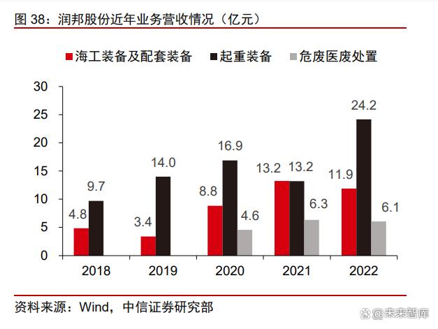 業(yè)務(wù)線豐富,布局高端裝備和環(huán)保板塊。公司主營業(yè)務(wù)分為包括海風(fēng)裝備、物料搬運 裝備的高端裝備業(yè)務(wù)和包含危廢及醫(yī)廢處理處置服務(wù)的環(huán)保業(yè)務(wù)。2022 年公司海風(fēng)裝備、 起重裝備、危廢醫(yī)廢處置業(yè)務(wù)分別營收 11.89、24.17、6.07 億元,占比 22.97%、46.71%、 11.73%。公司海上風(fēng)電裝備業(yè)務(wù)主要產(chǎn)品包括各類海上風(fēng)電基礎(chǔ)樁、導(dǎo)管架、海上風(fēng)電安 裝作業(yè)平臺、海洋工程起重機(jī)等。