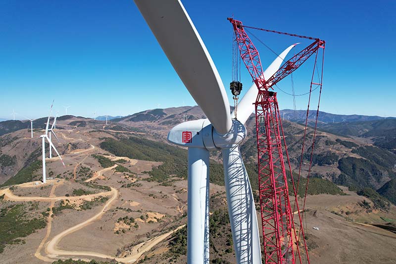 20日,在最后一臺(tái)風(fēng)機(jī)--8號(hào)風(fēng)機(jī)吊裝現(xiàn)場(chǎng),中國(guó)安能建設(shè)者們正在準(zhǔn)備發(fā)電機(jī)吊裝作業(yè)。“大家注意,起吊!”隨著吊車的啟動(dòng),葉輪慢慢向約95米的高空爬升。“今天基本沒有風(fēng),天氣晴朗,葉輪吊裝順利。”正在現(xiàn)場(chǎng)指揮的中國(guó)安能第二工程局普格采乃風(fēng)電場(chǎng)項(xiàng)目經(jīng)理魯大偉介紹道,普格采乃風(fēng)電場(chǎng)項(xiàng)目的31臺(tái)風(fēng)機(jī)終于完成了安裝,下一步將進(jìn)入調(diào)試階段。