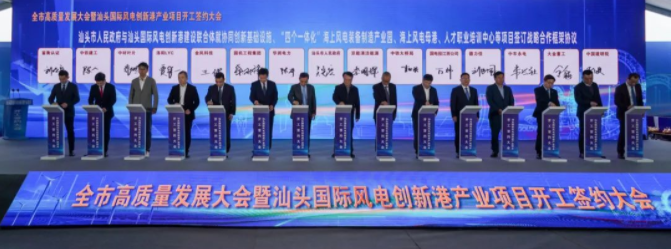 大會(huì)云集了金風(fēng)科技、中車永濟(jì)、德力佳、中材科技、北京鑒衡、華潤電力、京能集團(tuán)等國內(nèi)海上風(fēng)電裝備制造龍頭企業(yè)及能源企業(yè),為海上風(fēng)電母港、“四個(gè)一體化”海上風(fēng)電裝備制造產(chǎn)業(yè)園、廣東省臨海試驗(yàn)基地項(xiàng)目等一批海上風(fēng)電產(chǎn)業(yè)關(guān)鍵環(huán)節(jié)重點(diǎn)項(xiàng)目舉辦了集中簽約開工儀式,正式拉開了汕頭國際風(fēng)電創(chuàng)新港建設(shè)熱潮!