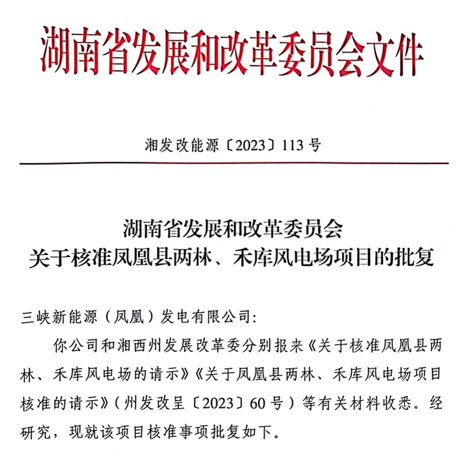 近日,湖南省發(fā)改委正式核準(zhǔn)湘西鳳凰兩林、禾庫風(fēng)電項(xiàng)目。
