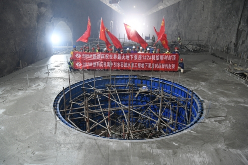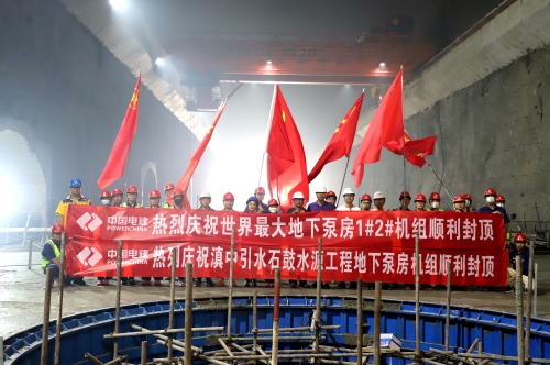 7月31日,伴隨著最后一車混凝土的傾倒,歷時310天,由中國水電十四局承建的世界最大地下泵房-滇中引水石鼓水源工程地下泵房1號2號機(jī)組順利封頂。
