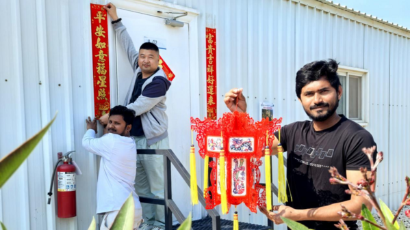 沙特國(guó)王港項(xiàng)目部精心策劃了一系列慶祝活動(dòng),讓中外員工共度歡樂(lè)祥和的中國(guó)年。團(tuán)拜會(huì)上,項(xiàng)目部向全體員工送上新春祝福,感謝大家的辛勤付出,并鼓勵(lì)團(tuán)隊(duì)在新的一年再接再厲,共創(chuàng)佳績(jī)。中外員工歡聚一堂,傾情演出,互致問(wèn)候,現(xiàn)場(chǎng)氣氛熱烈喜慶。除夕夜,項(xiàng)目部組織了包餃子活動(dòng),大家紛紛動(dòng)手參與,搟皮、包餡、捏褶,忙得不亦樂(lè)乎。許多外籍員工在中國(guó)同事的指導(dǎo)下,第一次體驗(yàn)制作餃子的樂(lè)趣,感嘆這一傳統(tǒng)習(xí)俗的獨(dú)特魅力。年夜飯上,項(xiàng)目食堂特別準(zhǔn)備了豐盛的中式年菜,中外員工圍坐一堂,共享美食,暢談文化習(xí)俗。大家紛紛表示,將以更加飽滿的熱情投入工作,為項(xiàng)目高質(zhì)量履約貢獻(xiàn)力量,共同推動(dòng)“一帶一路”建設(shè)邁上新臺(tái)階。