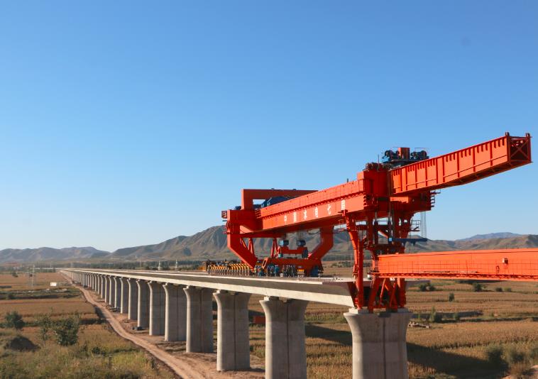 新京張鐵路720噸重的箱梁吊運