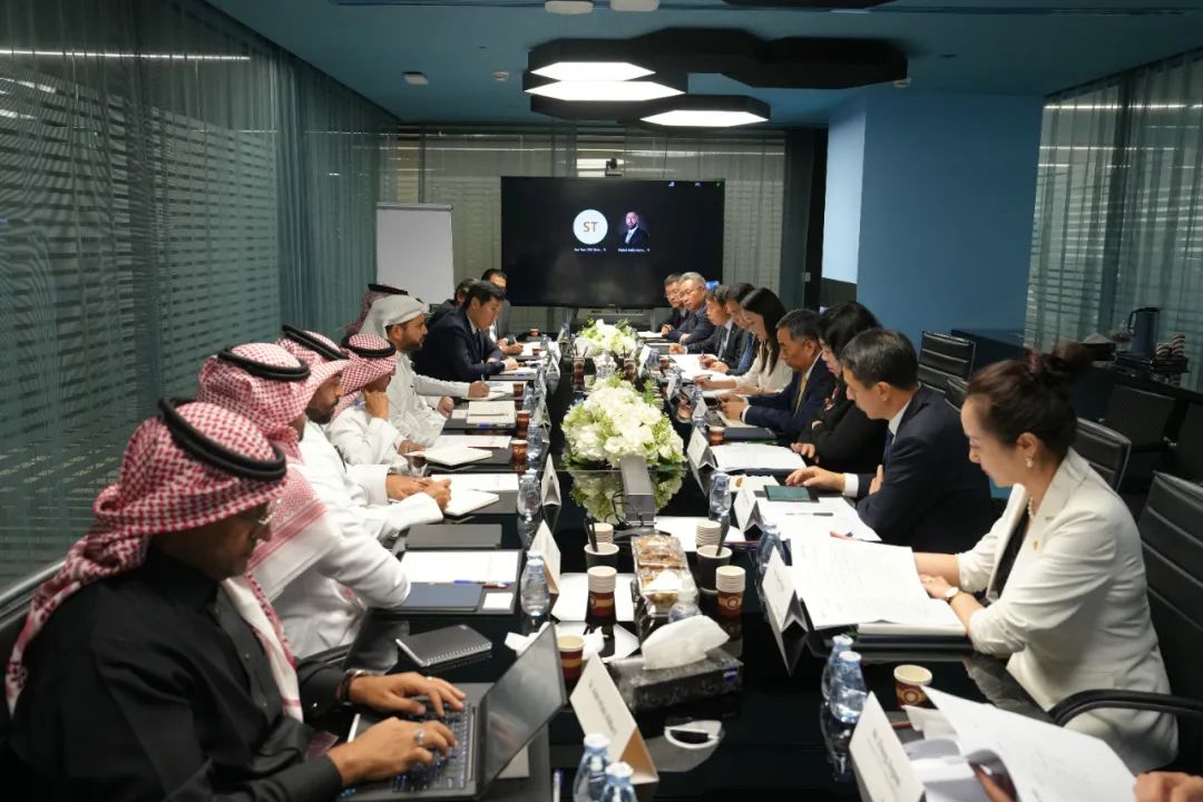 中國(guó)能建黨委常委、總會(huì)計(jì)師李麗娜,沙特安利捷集團(tuán)首席執(zhí)行官羅瓦伊德·阿爾·薩瓦夫,雙方相關(guān)部門、單位負(fù)責(zé)人參加活動(dòng)。(文圖:張爍、樊穎)