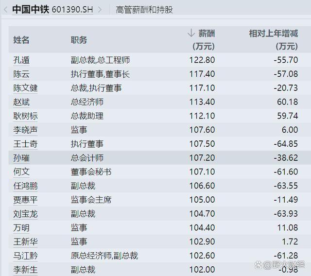 年報(bào)還披露,中鐵股份高管收入基本都超過百萬元,最高是副總裁兼總工程師孔遁,122萬元,董事長和總裁薪酬117萬元,監(jiān)事會(huì)主席薪酬105萬元。并有6位高管持有20多萬股至40萬股股份。