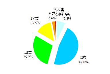 1940個國家地表水考核斷面中,水質優(yōu)良(Ⅰ~Ⅲ類)斷面比例為83.4%,同比上升8.5個百分點;劣Ⅴ類為0.6%,同比下降2.8個百分點。主要污染指標為化學需氧量、總磷和高錳酸鹽指數。