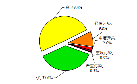 全國337個地級及以上城市平均優(yōu)良天數比例為87.0%,同比上升5.0個百分點。202個城市環(huán)境空氣質量達標,占全部地級及以上城市數的59.9%,同比增加45個。PM2.5年均濃度為33微克/立方米,同比下降8.3%;PM10年均濃度為56微克/立方米,同比下降11.1%。