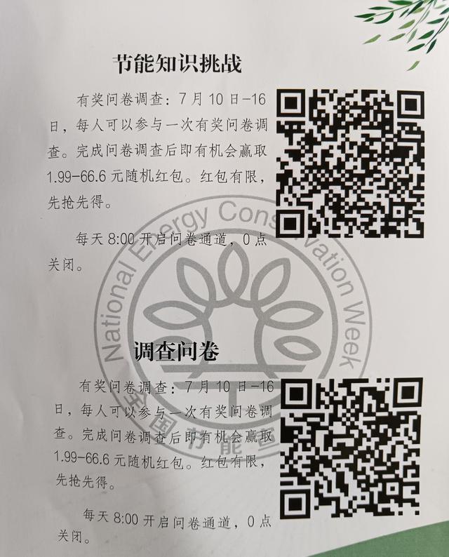 此外,記者還了解到,主辦方搭建了線上有獎(jiǎng)節(jié)能知識(shí)挑戰(zhàn)賽和調(diào)查問(wèn)卷平臺(tái),從7月10日到7月16日,平臺(tái)每天8時(shí)開(kāi)啟問(wèn)卷通道,0時(shí)關(guān)閉。完成挑戰(zhàn)則有機(jī)會(huì)獲得最高66.6元的現(xiàn)金紅包。紅包有限,先搶先得。