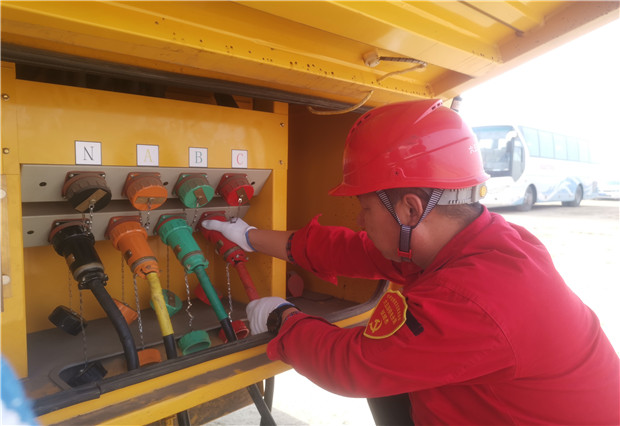 在接到開工儀式保電工作任務(wù)后,六五四供電分局高度重視,積極對(duì)接政府部門,了解用電需求,制訂詳細(xì)的保供電方案,落實(shí)專人負(fù)責(zé)、服務(wù)到位,提前一天組織分局黨員突擊隊(duì)的保電人員對(duì)涉及活動(dòng)區(qū)域的重要線路和電力設(shè)備開展常態(tài)巡視,排查并消除可能出現(xiàn)影響正常供電的安全隱患和缺陷,保障保電工作零故障、零停運(yùn),并根據(jù)現(xiàn)場(chǎng)需要,準(zhǔn)備發(fā)電車一輛供儀式現(xiàn)場(chǎng)用電設(shè)備使用,全力打造項(xiàng)目開工儀式保電安全網(wǎng)。活動(dòng)當(dāng)日上午,工作人員及發(fā)電車提前進(jìn)入保電現(xiàn)場(chǎng),連接、調(diào)試開工儀式用電設(shè)備,并對(duì)相關(guān)設(shè)備進(jìn)行了檢查,蹲守保電現(xiàn)場(chǎng),提高保電機(jī)動(dòng)性,確保了開工儀式用電萬無一失。