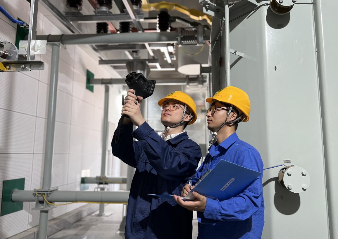 中國電力網(wǎng)訊(通訊員:史科揚)“1、2號主變運行良好,油溫油位均在正常范圍內(nèi),紅外測溫正常,全站滅火器均在保質(zhì)期內(nèi)……”5月10日,余姚市宏宇輸變電工程公司巡視人員來到110千伏雙河變,仔細(xì)地對站內(nèi)設(shè)備進(jìn)行測溫體檢,為電網(wǎng)心臟“把脈問診”,全力保障電網(wǎng)安全可靠運行。