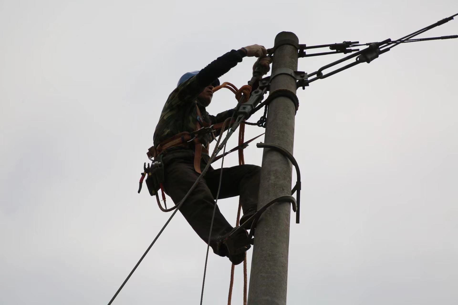 中國電力網(wǎng)訊 11月15日一大早,在延平區(qū)峽陽中學(xué)附近的公路,福建延平區(qū)供電公司的施工人員正如火如荼地忙著施工,桿上的人員忙著拆除廢舊拉線的,地面上的忙著開挖新拉線洞......
