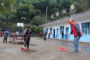 觀影結(jié)束后,隊員們帶領(lǐng)孩子們開展義務(wù)清潔鄉(xiāng)村環(huán)境活動,大家清掃了校園衛(wèi)生后,紛紛沿著村內(nèi)主要干道、巷道開始清理垃圾,通過一個小時的努力,將道路上的煙頭、塑料袋、枝葉等垃圾全部清掃干凈,整個鄉(xiāng)村煥然一新。