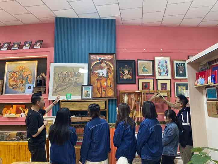 本次活動內(nèi)容豐富,黨員干部職工積極前往阿拉善盟非物質(zhì)文化遺產(chǎn)皮雕藝術(shù)傳承研究展示中心參觀并體驗非遺文化皮雕技藝。首先,由阿拉善盟非物質(zhì)文化遺產(chǎn)傳承人“皮雕匠人”張浩老師向大家介紹皮雕技藝在阿拉善地區(qū)傳承發(fā)展的歷史以及在展的各種皮雕藝術(shù)品,并現(xiàn)場演示了皮雕制作的基本技法,緊接著帶領(lǐng)大家制作傳統(tǒng)皮質(zhì)鑰匙包。職工們熱情高漲,紛紛動手操作,開料、刻線、描摹、染色、縫線,皮面和針線來回穿插,充分體驗到了非遺的魅力和手作的樂趣,最后在緊張刺激的民族團結(jié)知識問答題中結(jié)束了本次活動。