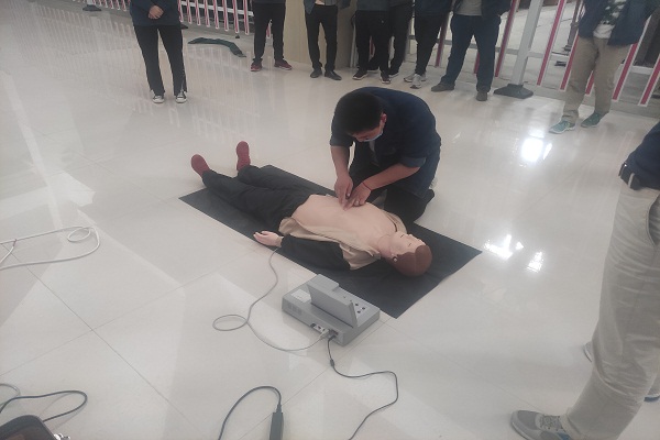 隨后,大家利用模擬人依次進(jìn)行了心肺復(fù)蘇搶救實(shí)訓(xùn)。實(shí)踐過程中,實(shí)訓(xùn)儀器不時(shí)的發(fā)出錯(cuò)誤提示音,有的胸外心臟按壓用力過猛,有的吹氣手法錯(cuò)誤,氣量過小,還有的動(dòng)作頻率過慢……。經(jīng)過李燾的一一指正,通過反復(fù)練習(xí),所有人員都成功完成了心肺復(fù)蘇搶救演練。