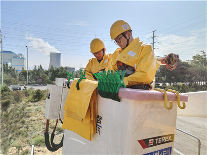 中國電力網(wǎng)訊 9月30日,在順達站10千伏三金公司9105線利康分支12號桿下,烏海電業(yè)局配電帶電作業(yè)中心的作業(yè)人員操作絕緣斗臂車橙黃色的作業(yè)斗緩緩升起,“注意做好絕緣遮蔽,保持與鄰相高壓帶電導線的距離。”絕緣斗臂車底下,工作負責人楊澤函全神貫注地注視著絕緣斗內。
