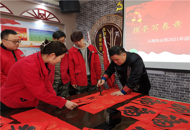 近日,由局工會(huì)和烏海市書法家協(xié)會(huì)聯(lián)合舉辦的“揮毫寫春意,潑墨送吉祥”活動(dòng)來到了基層單位六五四供電分局?;顒?dòng)現(xiàn)場(chǎng),烏海市書法家協(xié)會(huì)榮譽(yù)主席宋永江揮毫潑墨,行云流水,落筆如云煙,書寫了既有喜迎牛年,辭舊迎新的美好愿景,也有大展宏圖的勵(lì)志語句。一幅幅精彩的書法作品,一句句吉祥如意的春聯(lián),不僅讓基層員工目睹了書法家的風(fēng)采,更為即將來臨的春節(jié)增添了濃濃的節(jié)日氣息。