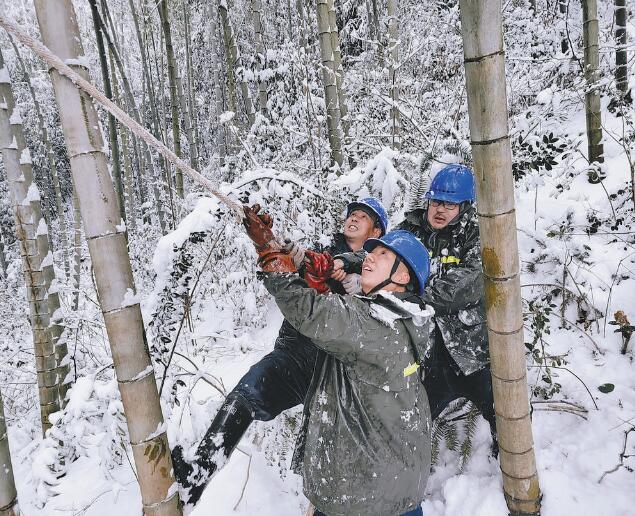 受冷暖空氣共同影響,2月7日8時至2月8日8時,安徽中南部、江蘇南部等地部分地區(qū)有大雪,其中局地暴雪。2月5日10時,國家電網有限公司發(fā)布雨雪冰凍藍色預警通知。相關供電企業(yè)按照公司部署及時啟動應急響應,做好防范應對準備,開展融冰除冰工作。廣大電網員工不畏嚴寒,堅守崗位抗冰雪,全力保障了電網安全穩(wěn)定運行和客戶可靠用電。