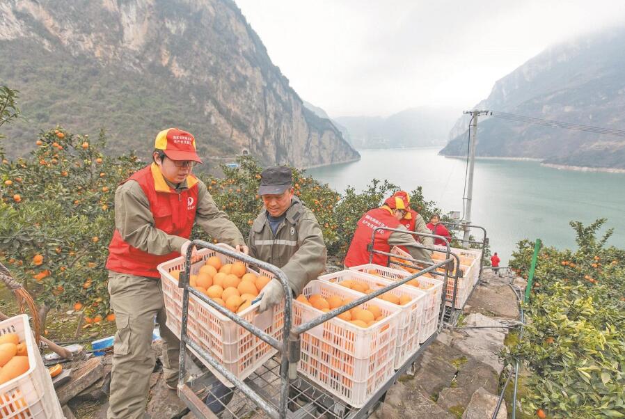 秭歸縣供電公司開展消費(fèi)幫扶活動,組織共產(chǎn)黨員服務(wù)隊(duì)隊(duì)員幫助臍橙種植戶采摘、搬運(yùn)臍橙。梅雪飛 攝